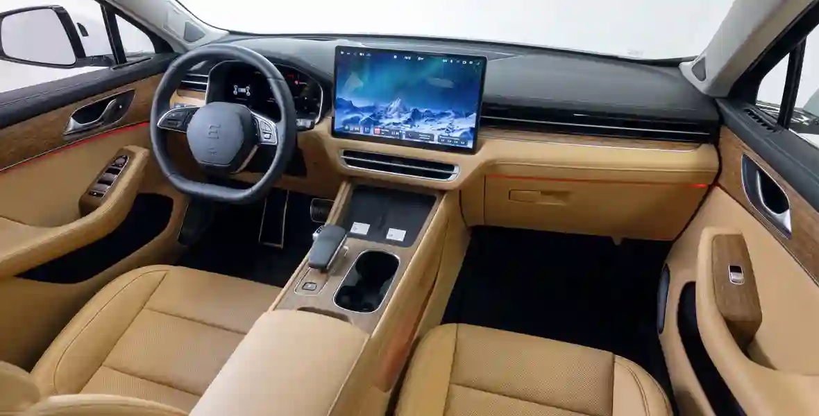 Если Seres Aito M5 имеет гибридную силовую установку, то EVOLUTE i‑JET — полностью электрический. В салоне можно долго искать кнопку, которая «включает» машину, потому что… её здесь нет. Чтобы кроссовер «проснулся», нужно лишь нажать на педаль тормоза. Но сидеть все так же удобно, перед глазами — информативный экран приборного щитка с качественной русификацией, а на центральной консоли — огромный «телевизор» для управления всеми системами электромобиля.